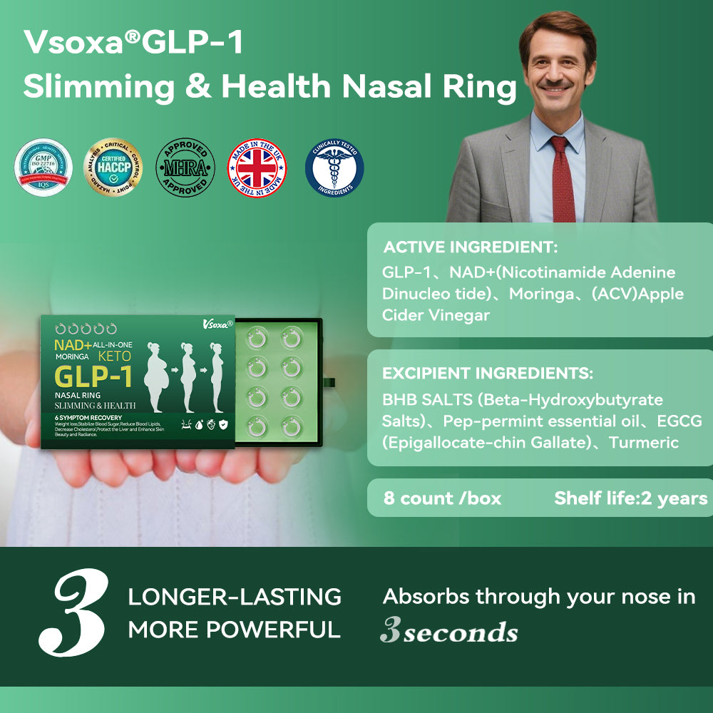 "I suffer from both obesity and diabetes, and I've been getting GLP-1 treatment at the hospital. You might be wondering why I suddenly switched to using the ๐๐ฌ๐จ๐ฑ๐ยฎ GLP-1 Slimming & Health Nasal Ring. GLP-1, a naturally occurring hormone that helps regulate blood sugar, is definitely a great treatment. It works really fastโjust a short time after used, my appetite dropped, I lost weight quickly, and my blood sugar went down. But, as we all know, it's tough to break old habits. On my scheduled injection days, I'd come up with all sorts of excuses to skip, which led to failed treatments. The cost, hunger, time conflicts, or even something as simple as it raining outside would keep me from going. But the GLP-1 Slimming & Health Nasal Ring are perfect for someone like me who struggles with inertia. I can use it easily at home, and the effects last, keeping my appetite in check. What's even better is that it's really affordable, and anyone can use GLP-1 to help lose weight and keep their blood sugar in check!