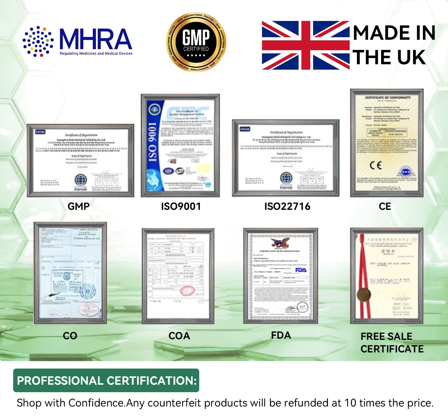 Without any side effects, our products are authoritatively certified by MHRA and GMP. You can use it with confidence.
